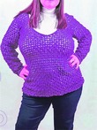 Snorlige V — летняя версия Snorlige. Женственный свитер оверсайз с круглым или округлым V-образным вырезом, спущенными плечами и полосами ажура и лицевой глади. Свитер вяжется сверху вниз. См. примечания к описанию на стр. ниже.
