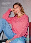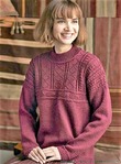место пестрого жаккарда — выразительный коллаж из «кос» и резинки, дополненный снизу ромбами. За счет неплотной вязки пуловер из чистошерстяной мериносовой пряжи получается очень легким.