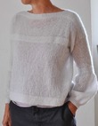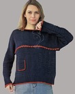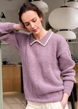 Связать эту модель очень просто: начните с эластичной резинки на манжете, а затем вяжите лицевой гладью до пройм. После того, как вы закончите нижние части спинки, переда и рукавов, самое время уделить внимание круглой кокетке. Для этого наберите все петли, одну за другой, на длинную круговую спицу и сосредоточьтесь на очаровательном узоре из листьев.