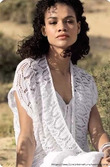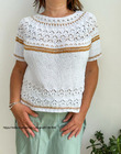 Fireflies в переводе с англ. – светлячки. Именно эти светящиеся жучки вдохновили автора на создание модели необычного пуловера с коротким рукавом, украшенного нежным ажурным узором с вкраплениями штрихов, выполненных нитью контрастного цвета.