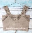 Связанный крючком топ с узором в виде ракушек сразу пробуждает желание отправиться к морю. У этой модели простой прямой силуэт с разрезом у горловины. Широкая нижняя планка, имитирующая пояс, выполнена рядами столбиков с накидом.