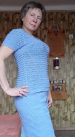 Нам понадобится 5 мотков — на размер 44-46 — васильковой пряжи: 50% мерсеризованный хлопок, 50% полиамид; 50 гр — 165 м. Крючок № 1,5-1,75. А также две пуговицы диаметром 1,5 см.