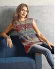 Разноцветный топ из мотивов наверняка понравится поклонницам стиля этно. А связать его сможет даже начинающая рукодельница.