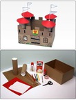 Замок должен быть надежно защищен от драконов и других монстров! Именно поэтому в этом замке есть подъемный мост. Замок выполняется очень просто, займет час-полтора Вашего с ребенком времени, станет отличной игрушкой или показательным проектом для садика. Потребуются: Большая картонная коробка для стен замка 4 башни-рулона Цветная бумага для крыши Бечевка и бусины для подъемного моста Деревянные шпажки для флагов