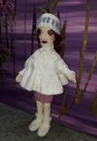 Описание нашла на кукольном форуме и начала вязать. Еще на стадии набора петель я поняла, что платье будет явно не для Барби, хотя спицы правильного размера, да и пряжа тоньше некуда. Тем более, что я уже вязала из нее одежду для кукол размера Барби.