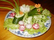 Такую Царевну лягушку вырезала из огурца,а болото изобразила из редиса,огурца,зел.лука,листьев салата,а лилия из репчатого лука.Попробуйте и порадуйте своих детишек!