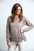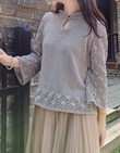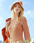 Это вязаное крючком изделие отличается различными узорами на основной части и рукавах. Широкий вырез горловины создает женственный силуэт в области декольте, а свободные рукава три четверти обеспечивают комфорт. Натуральный бежевый цвет универсален и подчеркивает утонченный шарм утонченной взрослой женщины. Рукава вяжутся с лицевой стороны, а манжеты имеют фестончатый узор.