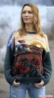 Затейливые переплетения ромбовидного узора, напоминающего растительный орнамент, никого не оставят равнодушным. В остальном модель довольно простая: квадратной формы, с прямым вырезом горловины, обрамленная планками в резинку.