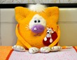 Дело было летом, огород,прополка...А ляльке вынь-да-положь котика с мышкой,а пряжи подходящей нет,ну, вот,что нашла, из того и слепила!