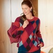 Джемпер из пушистого мохера украшен разноцветными ромбами. Дополнительный объем создает еще больше комфорта: такую вещь хочется носить и дома, и на улице.