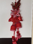 Собрала по дому все что могла! Куски лент, небольшие фрагменты кружев( не всегда красные, но быстро покрашенные акриловыми красками), небольшие остатки всяких украшений. Тоже все подкрасила. Цветок, типа, пуансетии, сделала из ватных дисков и клейстера. Тоже покрасила акриловыми красками. Нижний подвес сшила из бязи, покрасила. Читать далее»