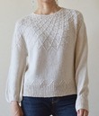 Этот свитер с круглой кокеткой связан из цветочных мотивов. Спокойные, сдержанные цвета придают ему элегантный вид.
