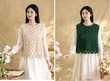 Затейливые переплетения ромбовидного узора, напоминающего растительный орнамент, никого не оставят равнодушным. В остальном модель довольно простая: квадратной формы, с прямым вырезом горловины, обрамленная планками в резинку.