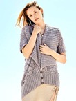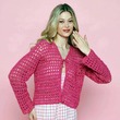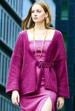 Для вязания нам потребуется 450 (550) г для кардигана ярко-розовой (цвет № 140-775) и 150 г для шарфа коричневой (цвет № 140-746) пряжи JUNGHANS-WOLLE "New Wool": 90% овечья шерсть, 10% полиэстер; 125 м/50 г.