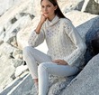 Этот свитер с круглой кокеткой связан из цветочных мотивов. Спокойные, сдержанные цвета придают ему элегантный вид.