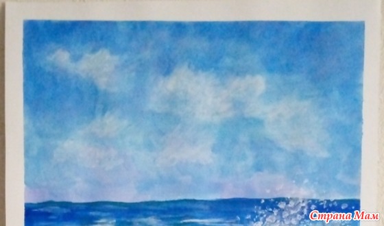 Доброе время суток! Мой отчёт за июль. Море. В этом месяце я решила рисовать. В этой теме: море вдохновения, море возможностей, море идей. Мои материалы: бумага, акриловые краски, кисти, мастихины. Зафиксировала бумагу и в перед. И с первых же штрихов, всё что могла испортила - пузыри. Потом услышала информацию, что эту бумагу нужно правильной стороной фиксировать, чтобы не было пузырей. Но мы же не ищем лёгких путей. Продолжение работы: